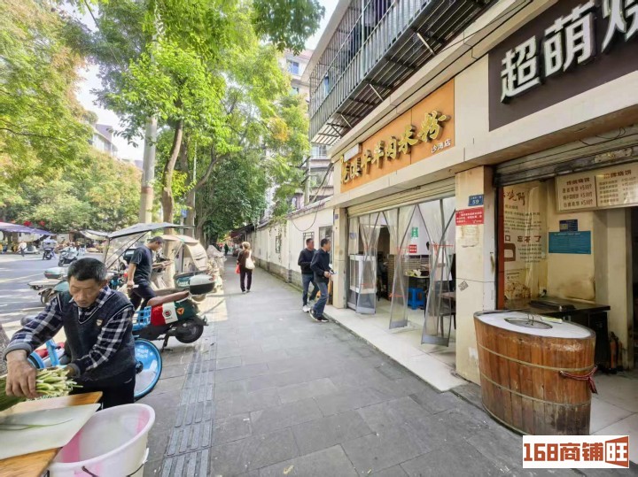 我们店铺斜对面就是农贸市场,这周边的居民基本上都在这个市场买菜,左边是医院,这边商圈成熟,常居住人口多,我们房租也便宜,有外摆区,如果您是想做烧饼店的话我们可以教技术,店铺可以整转可以空转,这个店适合做卤菜店、炸鸡店、小吃店等等,这边有没消费实力来看了就知道